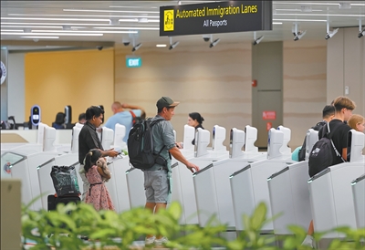 新加坡樟宜机场利用人工智能驱动的边检系统显著提高通关效率。人民日报记者 白元琪摄